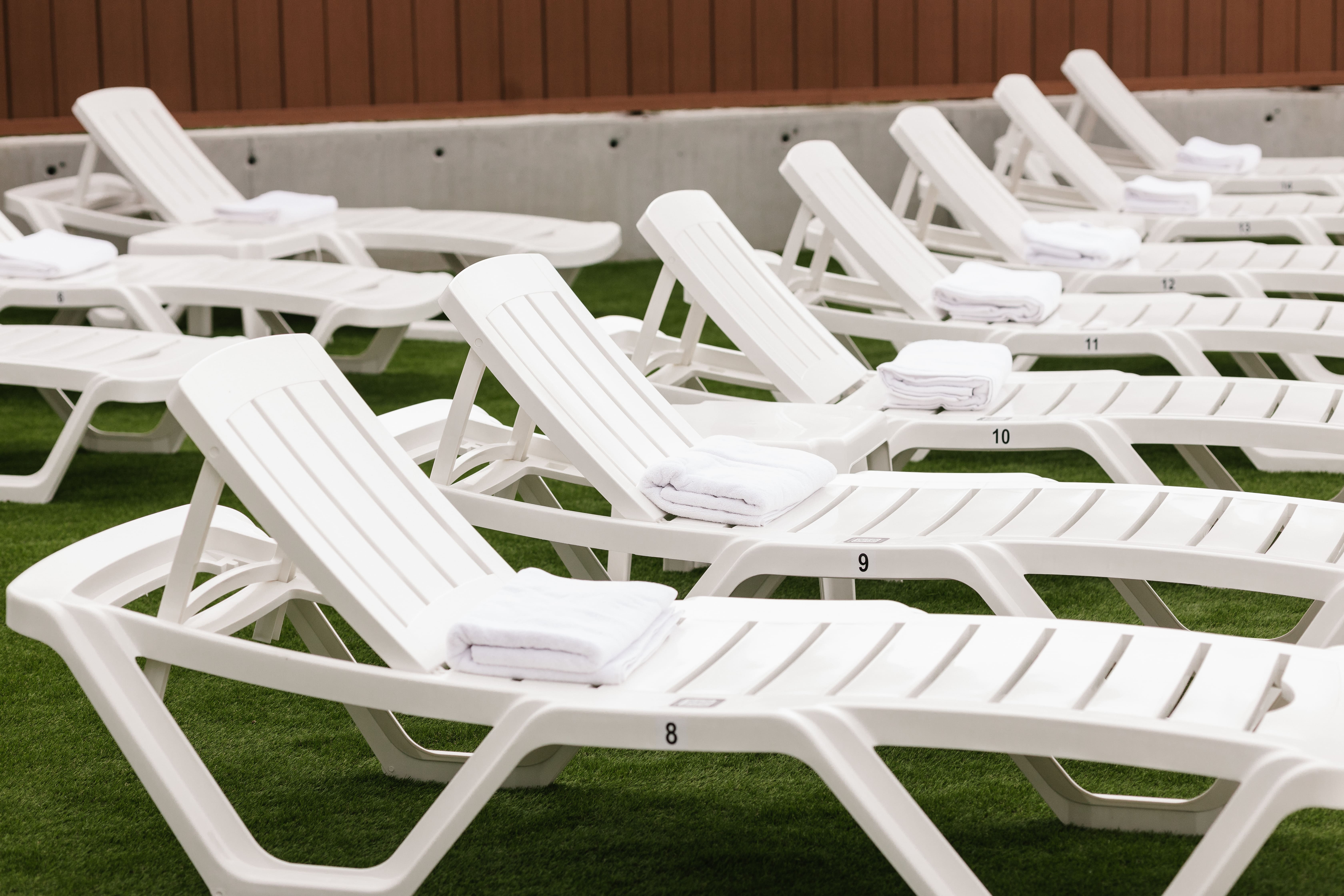 Коли на вулиці спека, плюхайся в прохолоду басейну! Відпочивай на комфортних шезлонгах, а освіжитися можна ще й прохолодним напоєм з бару поруч.